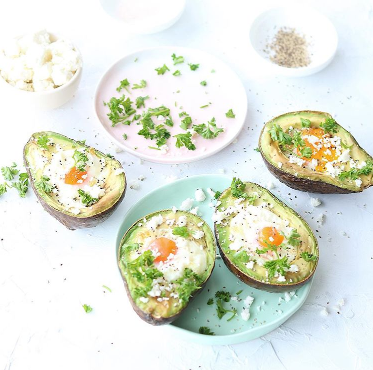 Scoop out about 2 tablespoons of avocado in the middle of each half to create a deeper cavity (that’s where the eggs go).