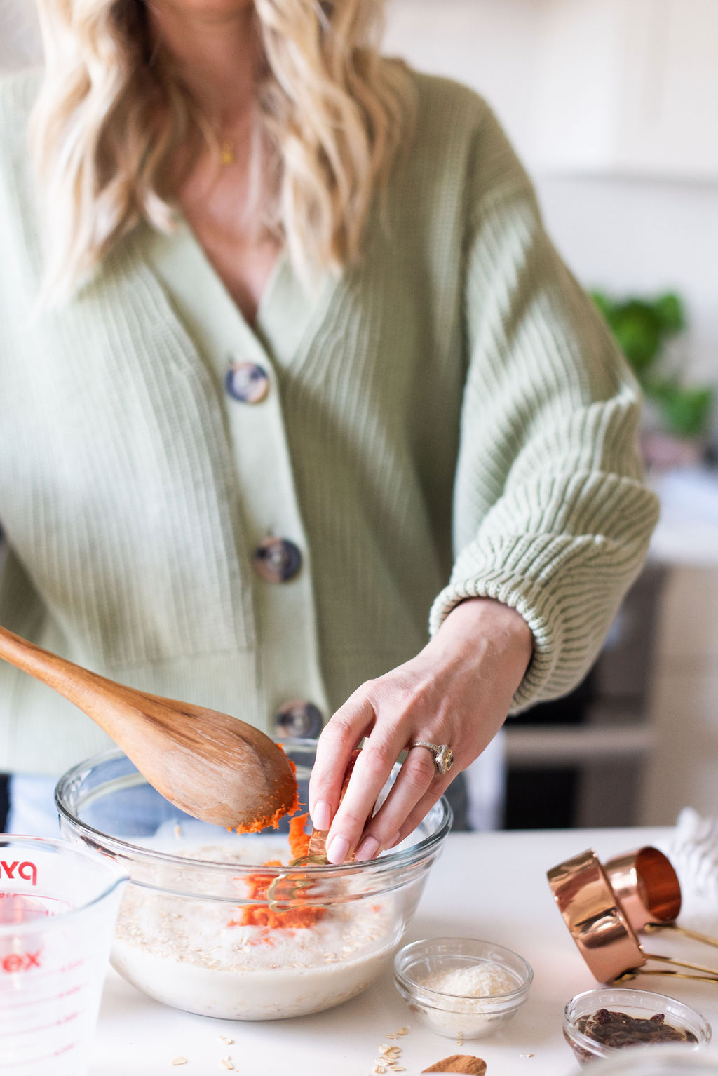 Overnight oats are such a classic, healthy and nourishing choice for breakfast or mid-morning snack. I’m literally obsessed with the addition of grated carrots, chopped pecans, and all the associated spices that make it taste like carrot cake! (Yes you can have your cake and eat it too). 🥕🐰💛