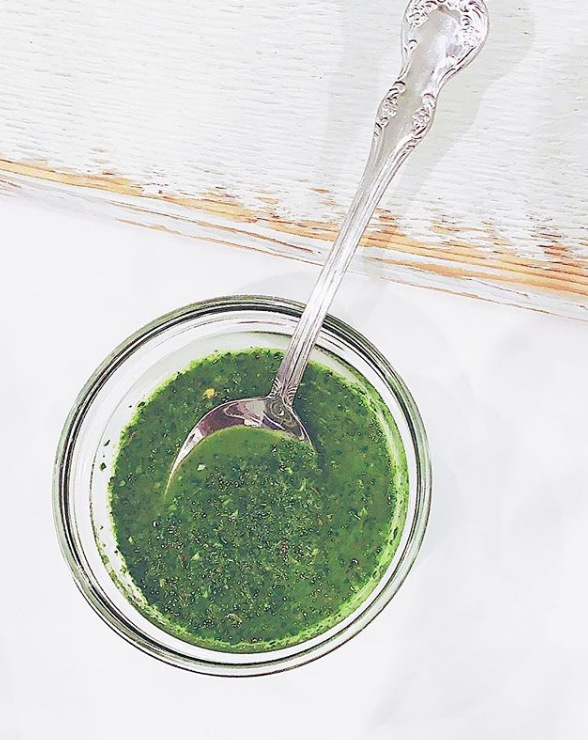 - In a food processor pulse together spinach, garlic, oregano, vinegar, pepper flakes, salt.