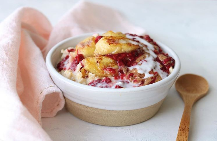 Divide oatmeal between 2 bowls, top with the caramelized bananas.