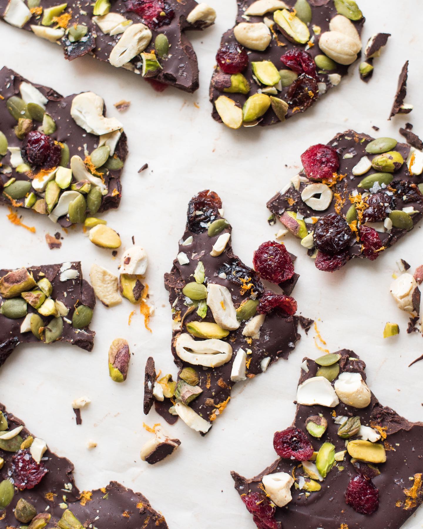 07. Once the chocolate is completely hardened, use your hands to break it into pieces. Serve immediately, or cover and store at room temperature for up to 1 week. Can be refrigerated for up to a month.