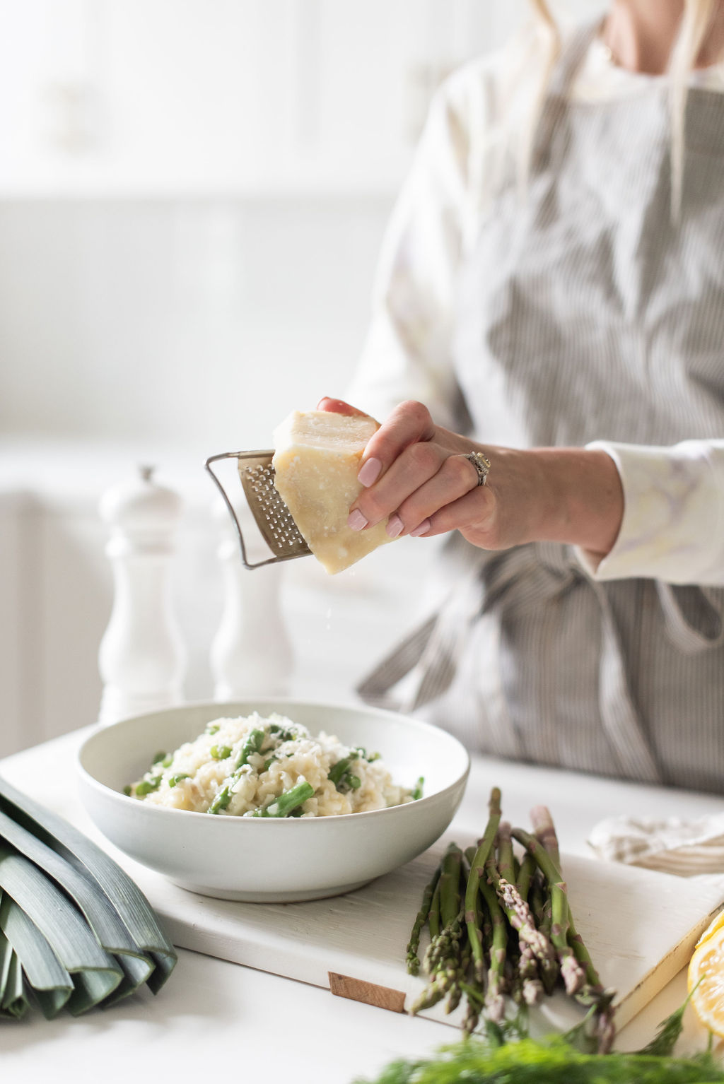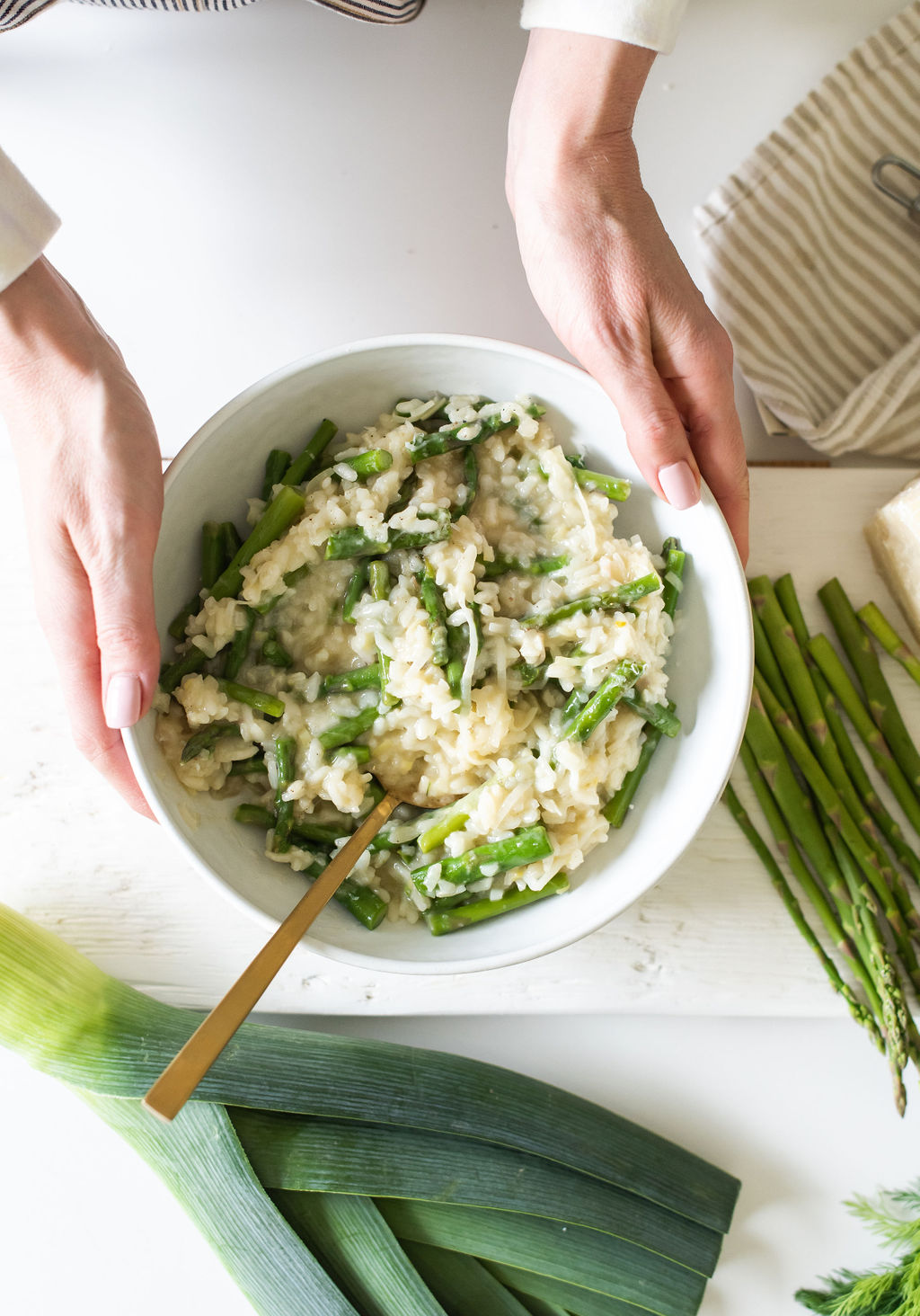 Risotto really feels like a complete meal, and the combo of leeks, shallots and asparagus bring in a light spring feel. Want to brighten it up even more? Zest and juice lemon for a fresh finish.