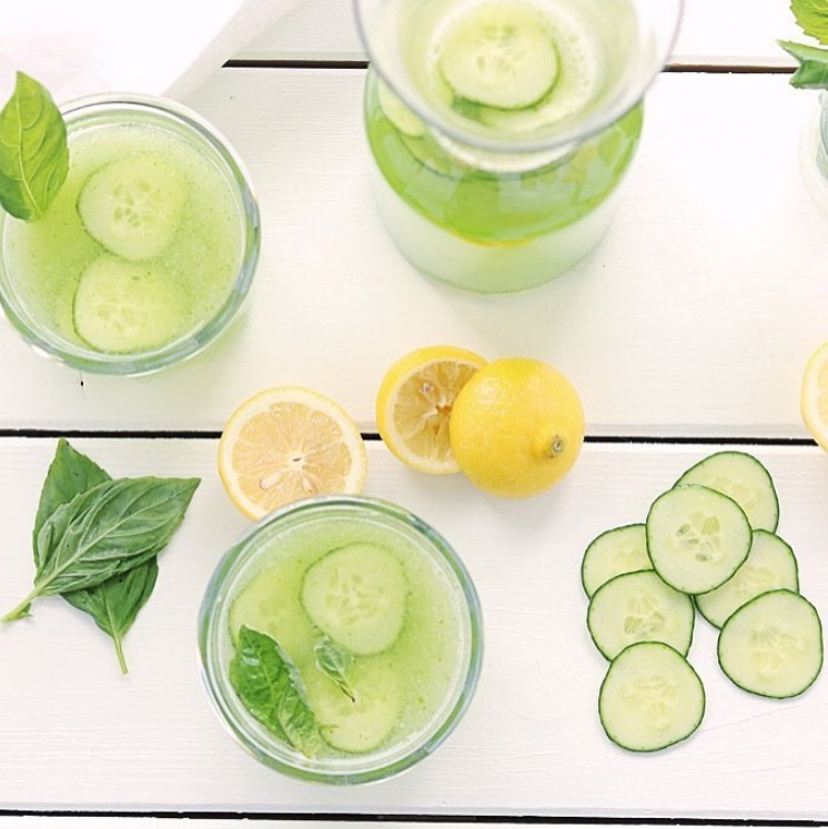 - Add the sliced cucumber to a blender with the basil, lemon juice, cold water, and honey. Blend until smooth.
