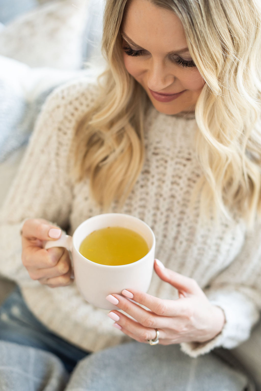 You will always find me sipping on something warm during the day. After my morning cup of coffee I make the switch over to herbal tea or I really love this warming and grounding winter tonic. I just keep adding more hot water as I run out. It feels like the biggest hug!