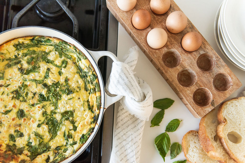 One of the most delicious and savoury additions to a weekend brunch, lunch or even quick week-night dinner are eggs. They are a perfect source of protein, nourishing, delicious, healthy and so versatile. I love a good fritatta because I can combine veg and protein in one skillet. Serve with a side of toasted sourdough and your meal is complete!