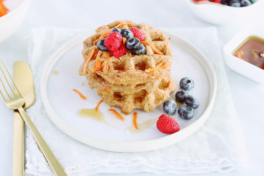 After preheating your waffle maker, scoop out the waffle mixture and add onto the waffle iron. Cook until the edges are crisp and the color is golden brown.