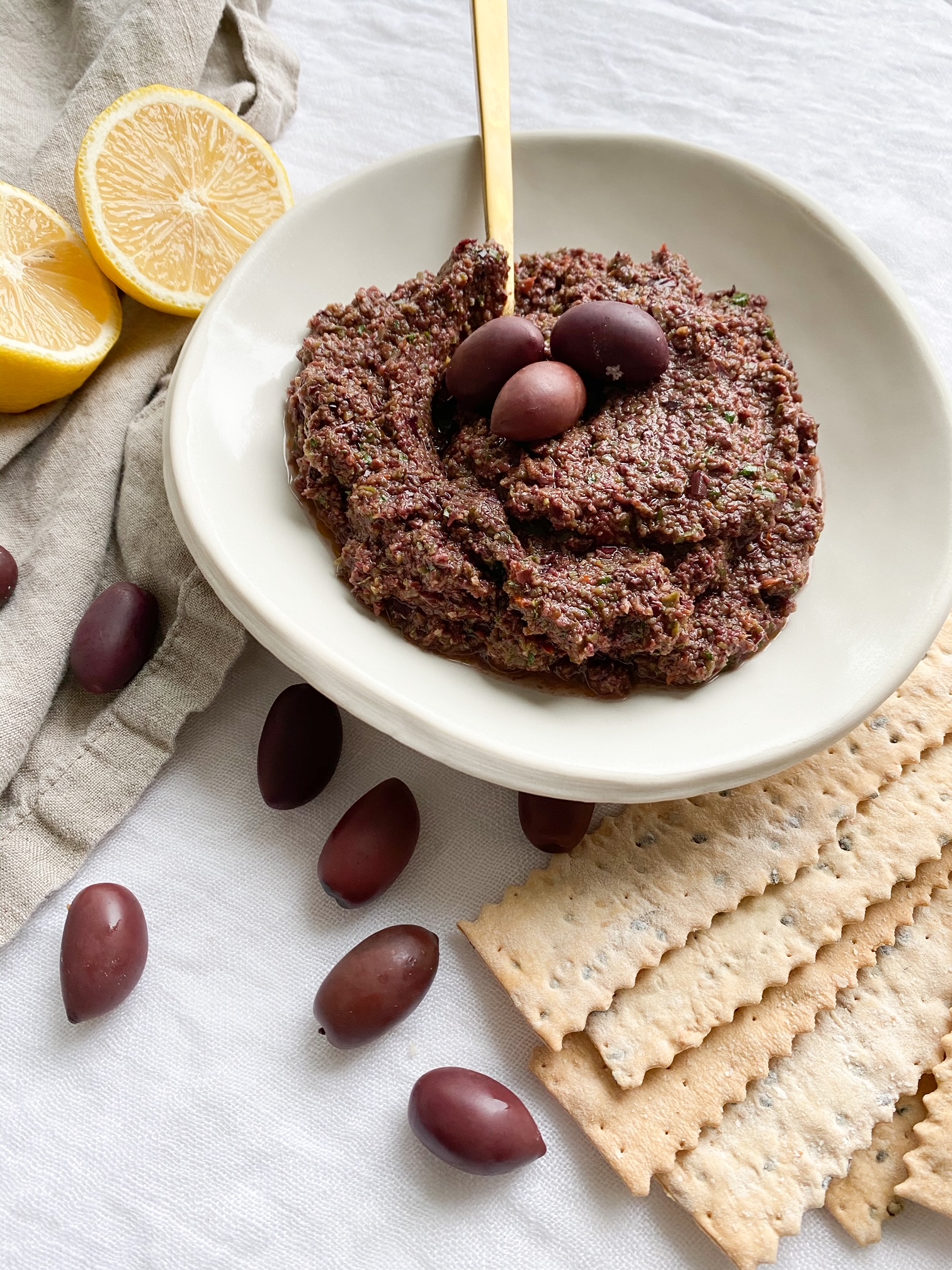 - 01. In a food processor, add the olives, capers, tomatoes, garlic, oregano, parsley, basil, lemon juice, olive oil, and black pepper.