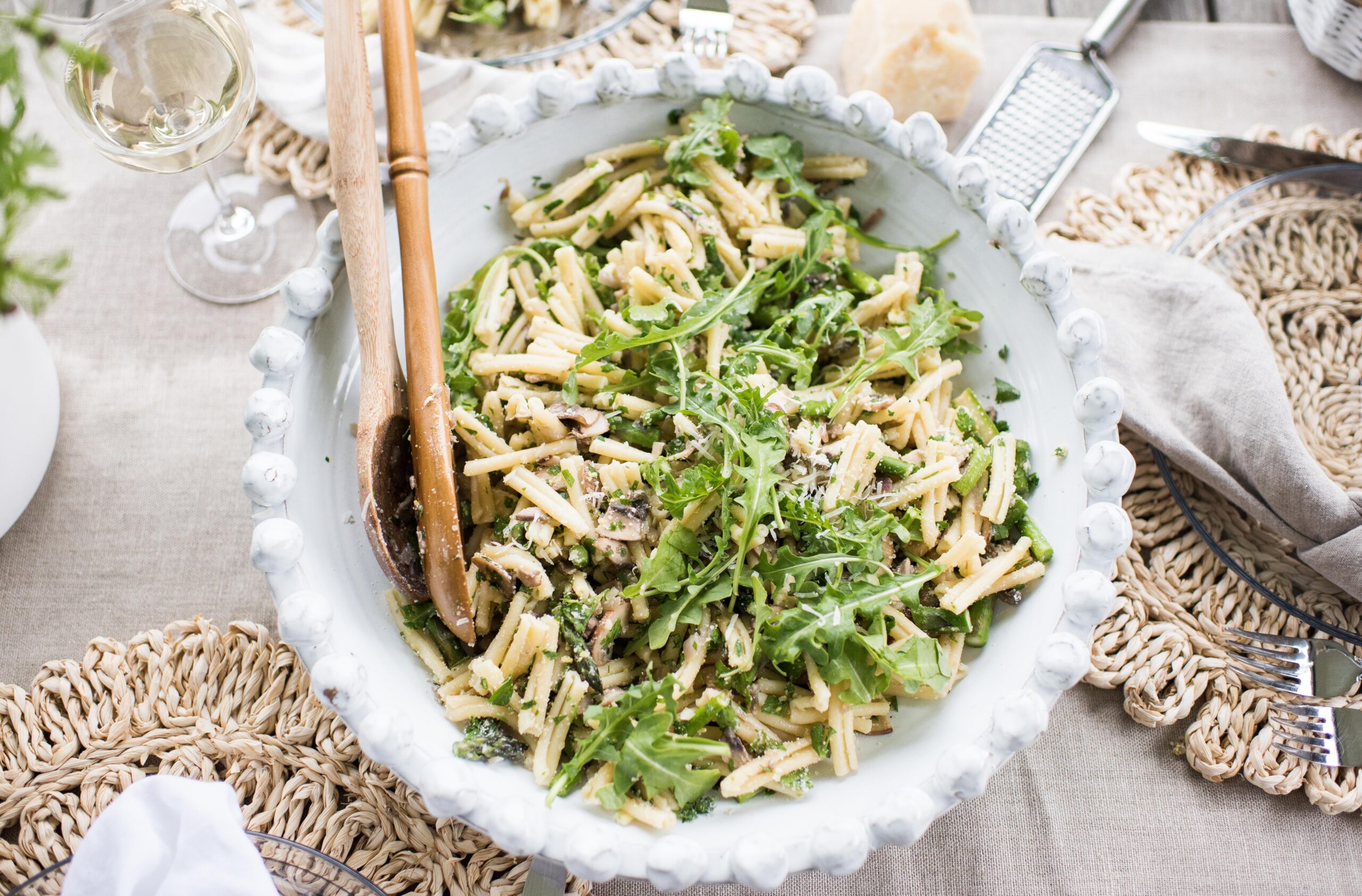 There are SO many delicious ways to enjoy this peppery, tart cruciferous leafy green (also known as rocket). It’s incredibly nutritious, and aside from making a salad from it (I love a lemon, parm vinaigrette.) I also love it tossed into a pasta dish.