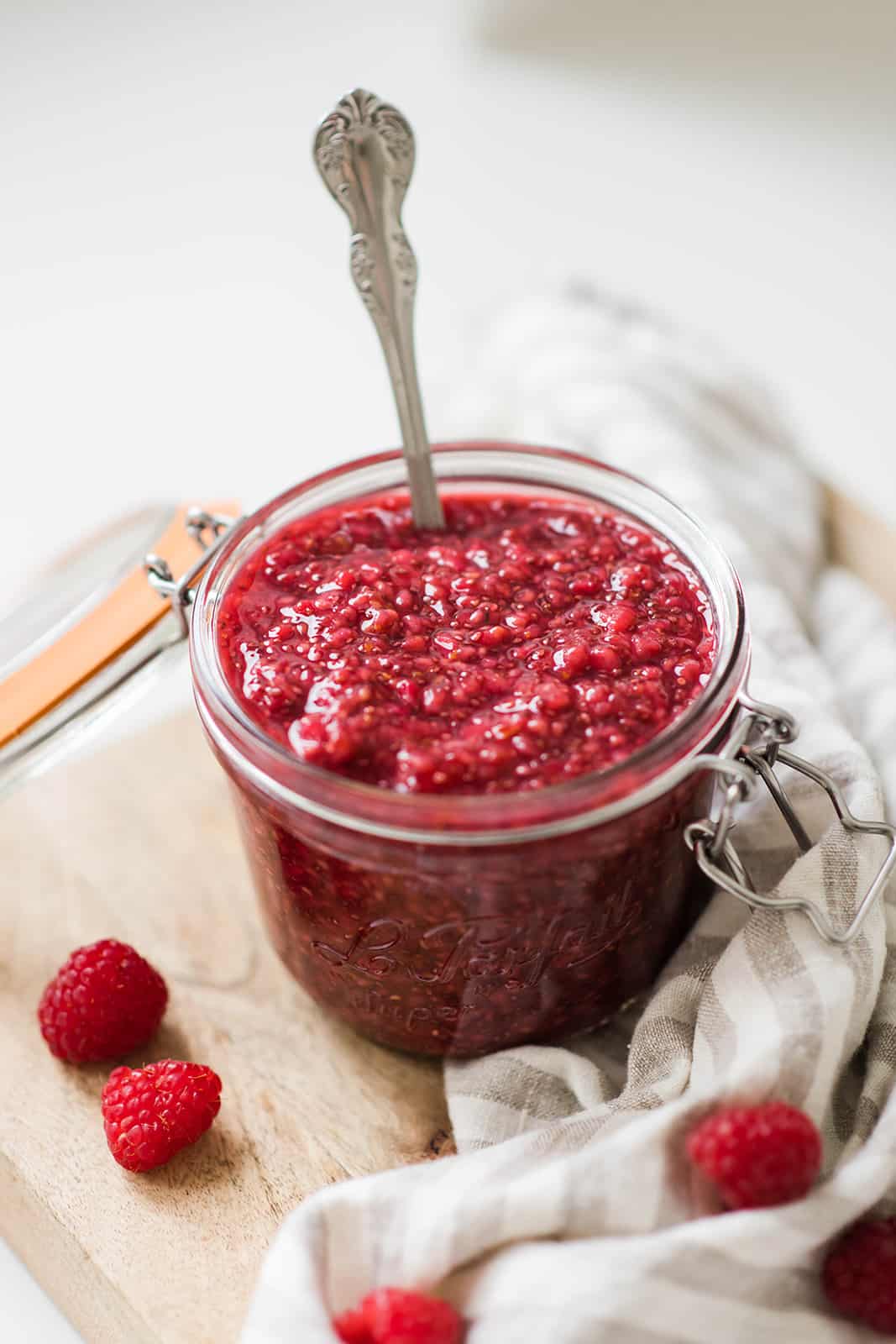 I love a fresh made chia jam which is so easy and can be used for toast, yogurt, waffles, oatmeal, etc etc. it’s so much better than any store bought jam as you control the sugar, and the addition of the chia is like magic for your gut! It adds protein, fibre and omega3 fatty acids- natures gifts all in one seed.