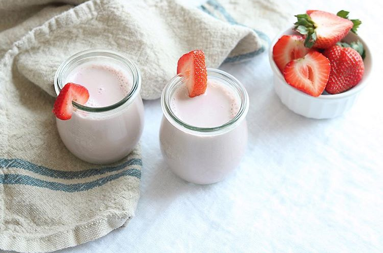 The liquid that remains in the large mixing bowl after squeezing the pulp will be the strawberry almond milk.