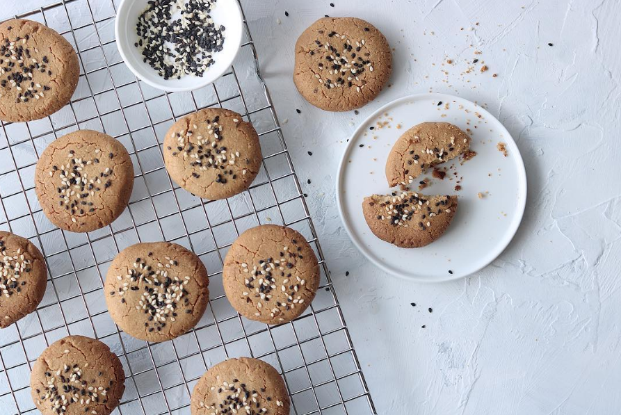 - Sprinkle some sesame seeds on top of each cookie and press the seeds in the dough with the top of your fingers.