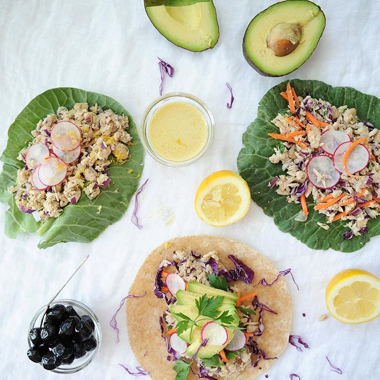 5. Evenly divide arugula and tuna mixture down center of wraps.