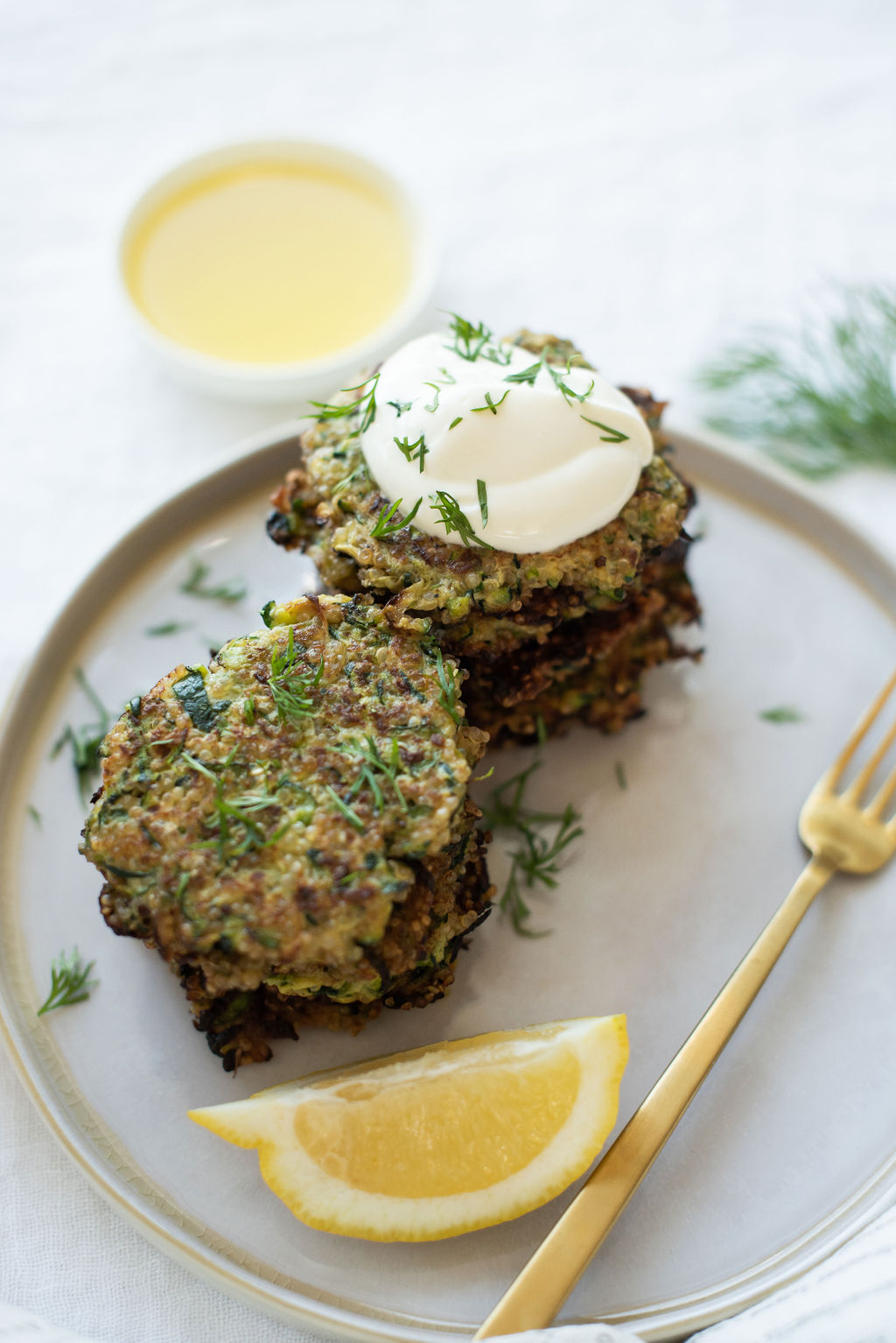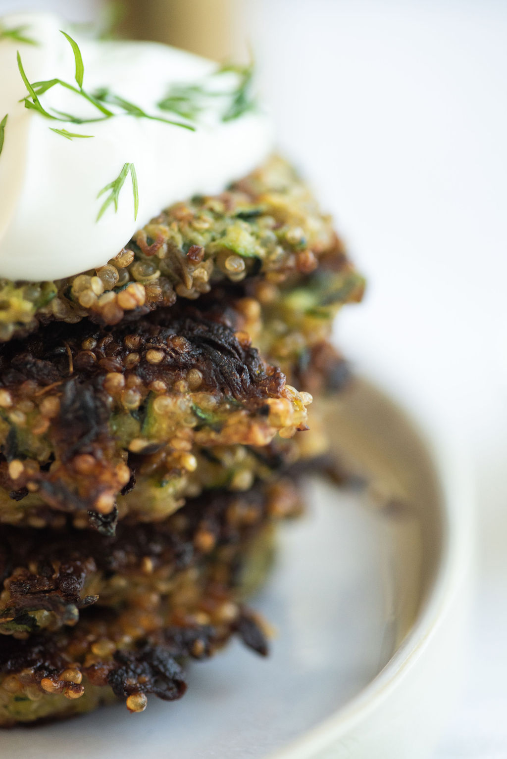 If you are looking for a delicious and fun addition to your meatless Monday menu I’ve got you covered with this light, crispy, and refreshing zucchini quinoa fritters! Quinoa is one of my go-to’s for stuffing any kind of meatball, hamburger loaf etc, and it works So well with these fritters.